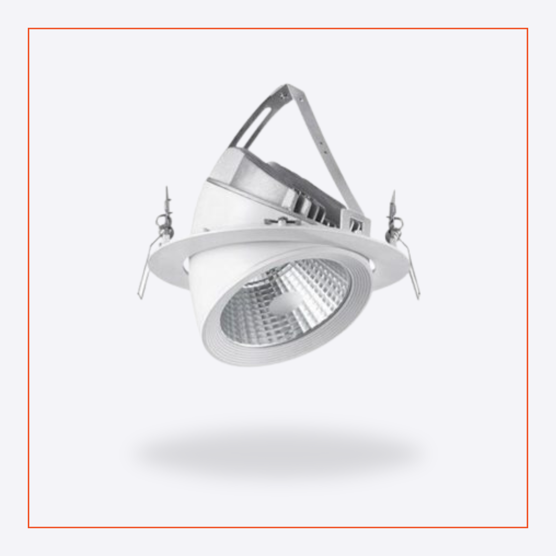 The LED TrunkLight Series is a high-performance gimbal downlight that replaces traditional metal halide fixtures while delivering up to 80% energy savings. Certified to ENEC, SAA, LM-80, TM-21, CE, ROHS, and TUV standards, it features UGR <19 for reduced glare and is available in multiple color finishes.